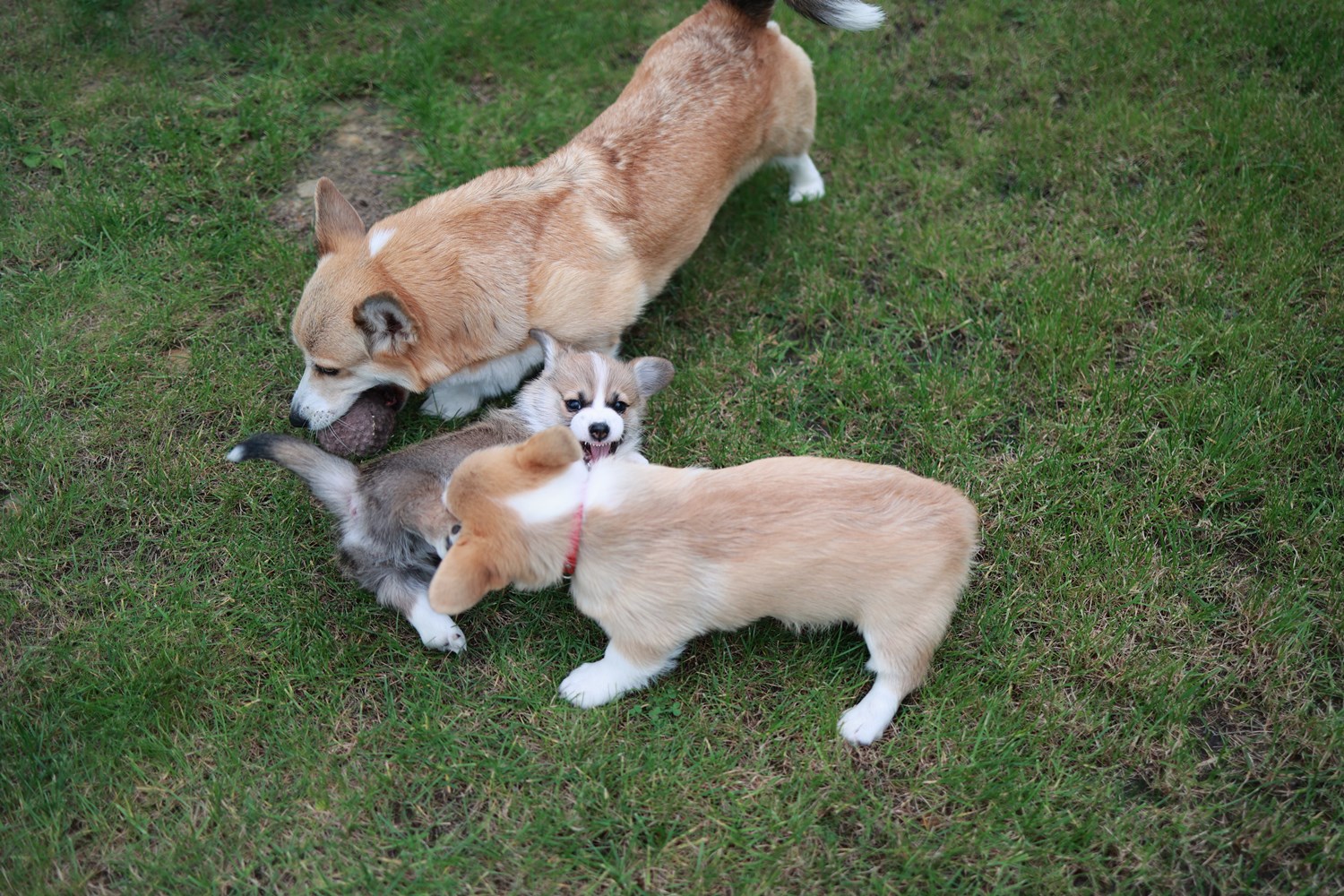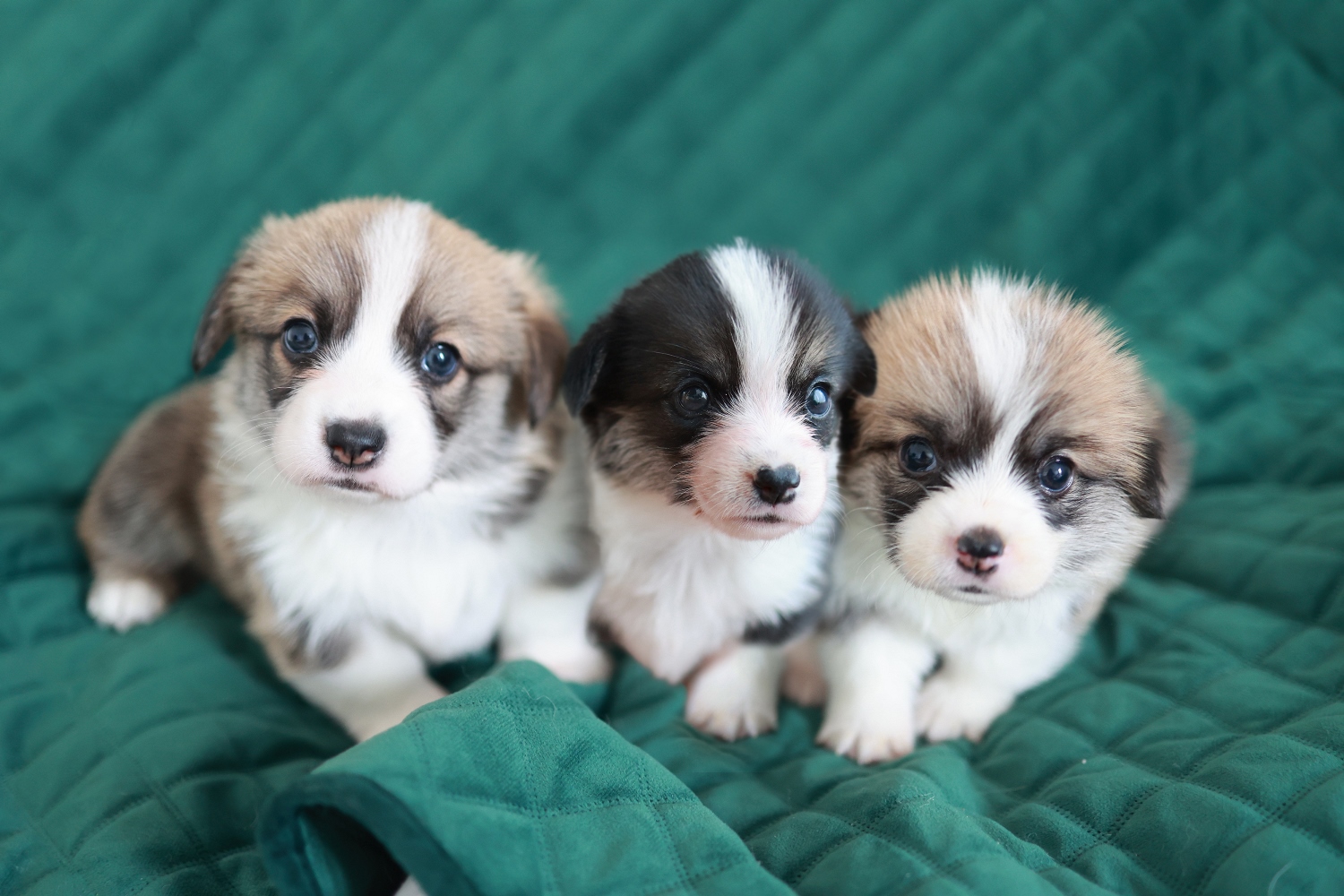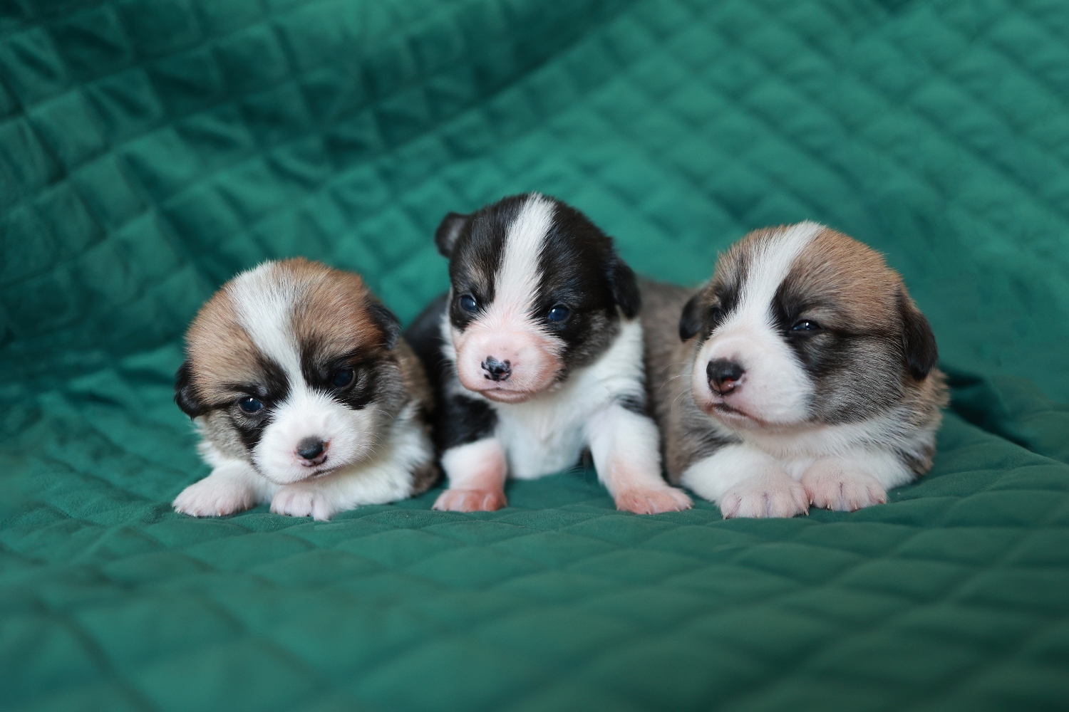 Dwie suczki corgi (tricolor oraz rudo-biała NBT) i jeden samiec(rudo-biały).