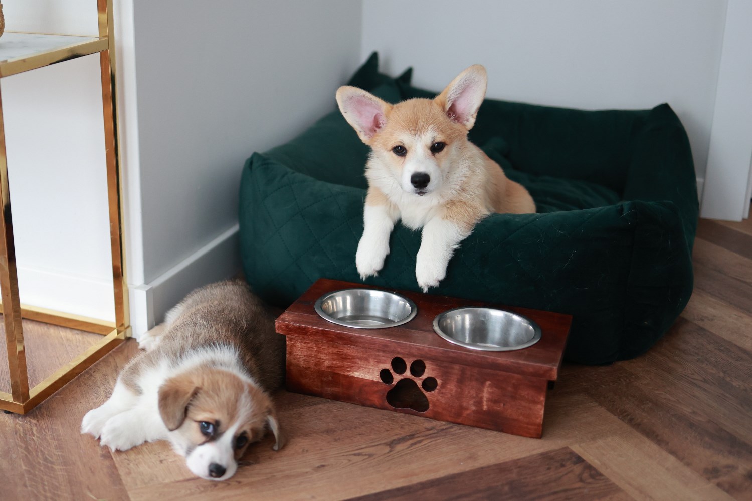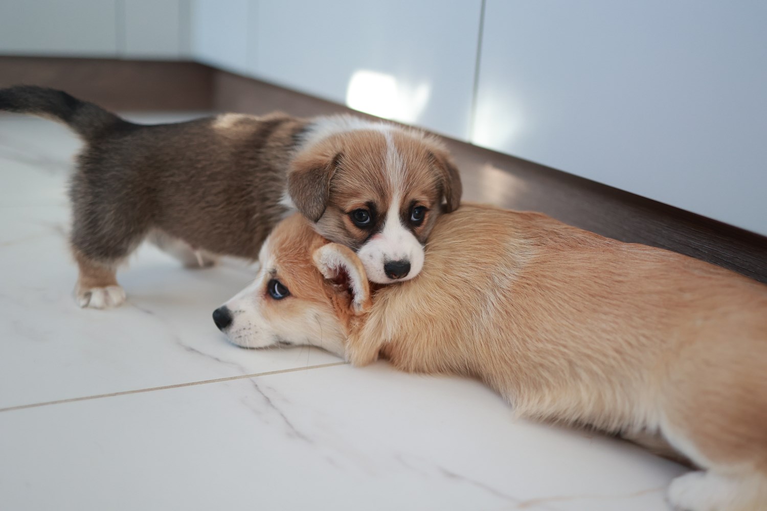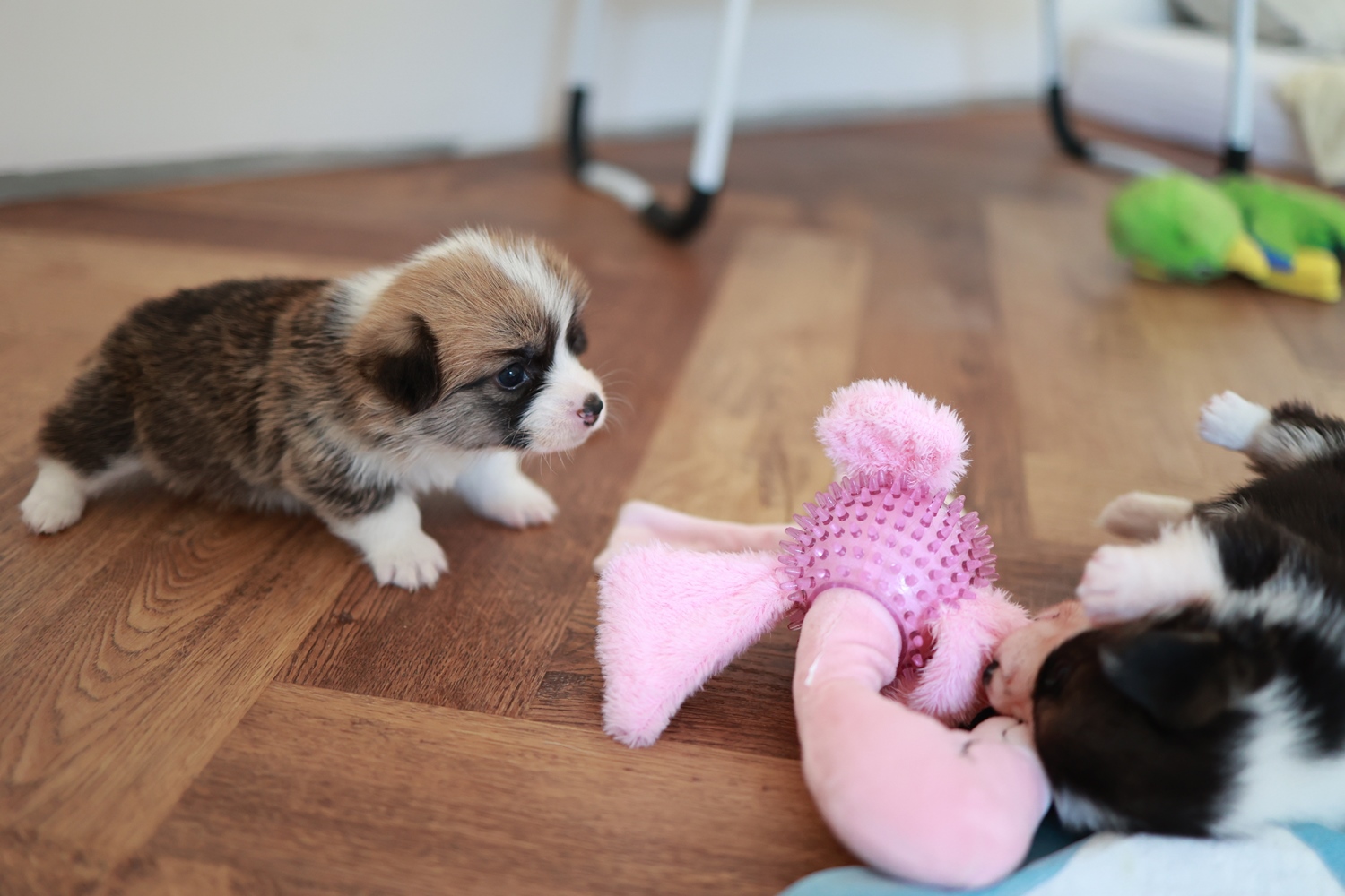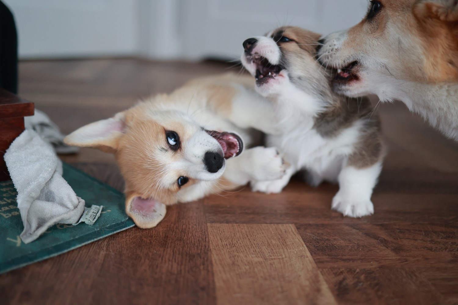 Dwie suczki corgi (tricolor oraz rudo-biała NBT) i jeden samiec(rudo-biały).